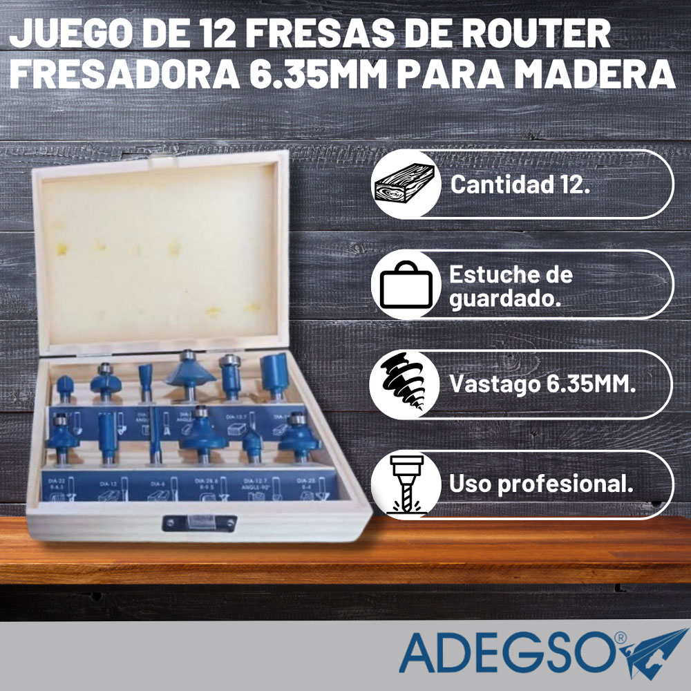 Descripción principal: Juego de 12 fresas de router fresadora 6.35mm para madera