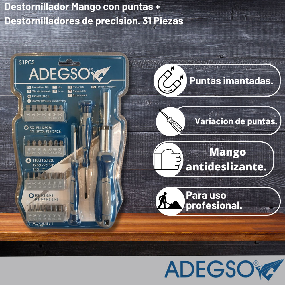 Descripción principal: Destornillador Mango con puntas + Destornilladores de precision. 31 Piezas