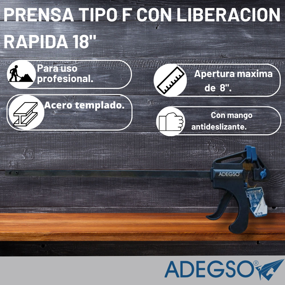 Descripción principal: Prensa tipo F con liberacion rapida 18"