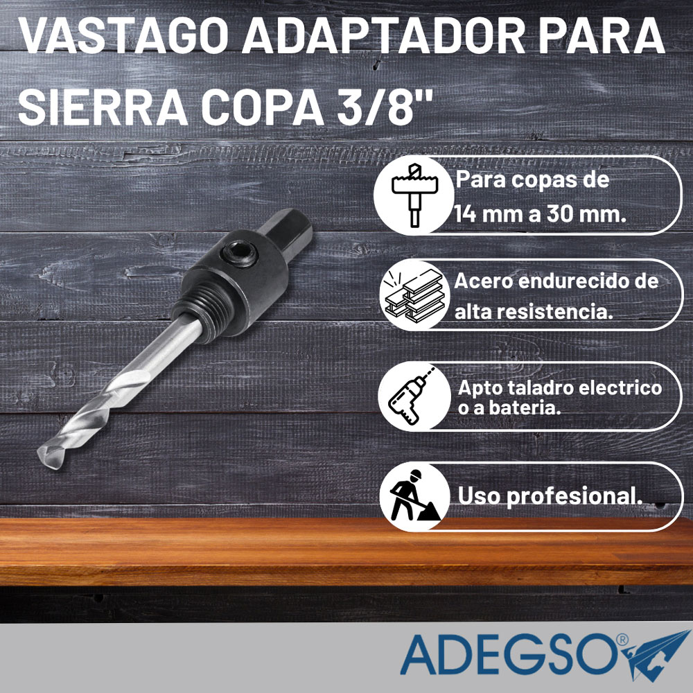 Descripción principal: Vastago adaptador para sierra copa 3/8"