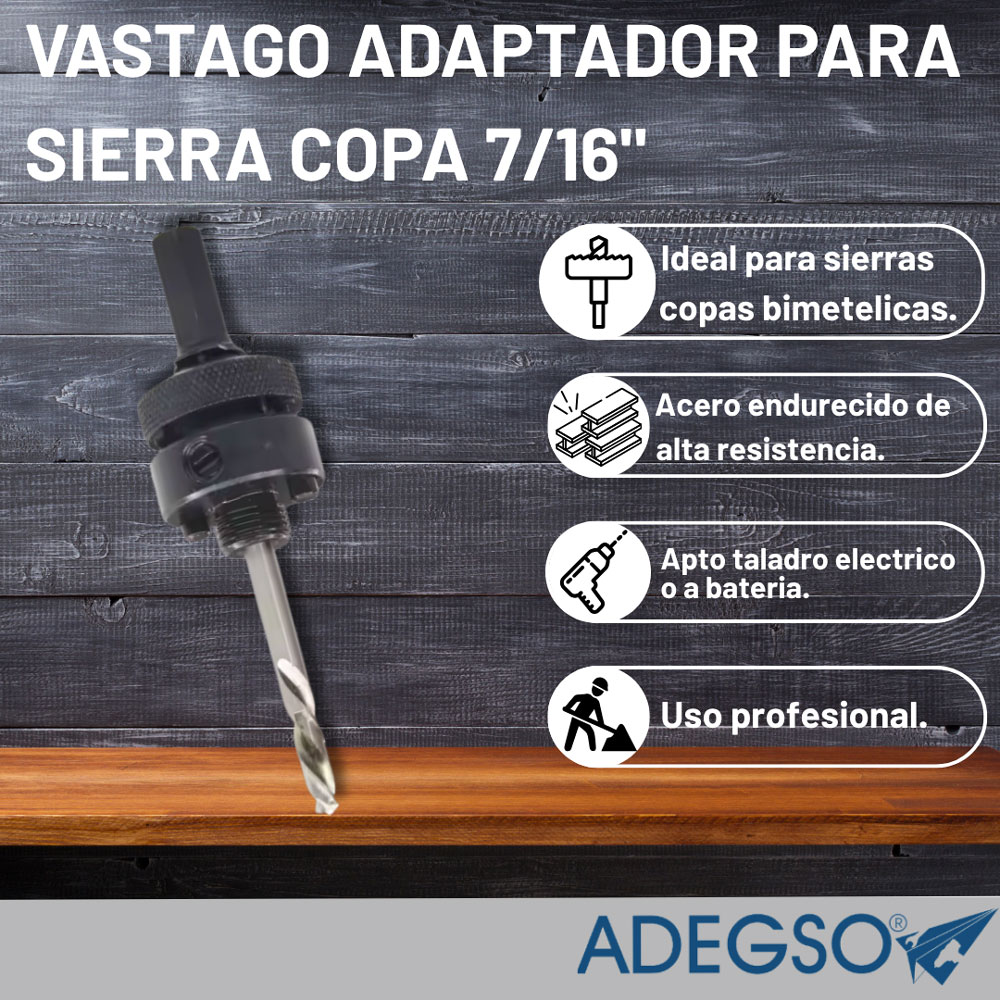 Descripción principal: Vastago adaptador para sierra copa 7/16"